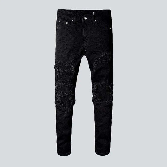 Distressed skinny biker jeans for men
