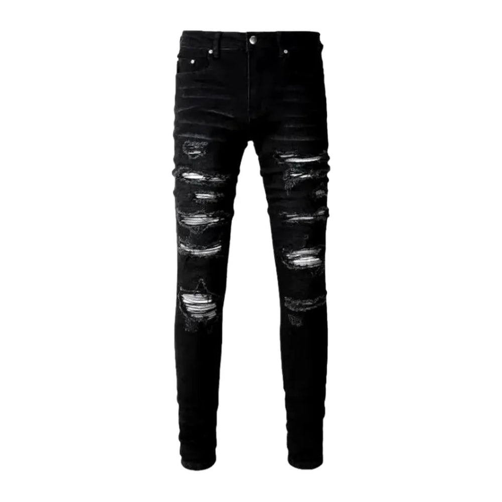 Make a lasting impression with these graffiti-painted jeans! Combining year-2000-style details with a slim fit, mid-rise cut, and stretchy fabric, they're the perfect addition to any wardrobe. Show off your unique style and be the envy of your friends with these one-of-a-kind jeans. Get your pair today and be the star of the show!