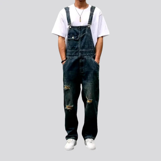 Loose fit men's jean jumpsuit