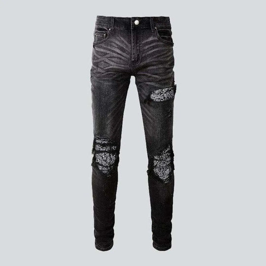 Crystal color patch men's jeans